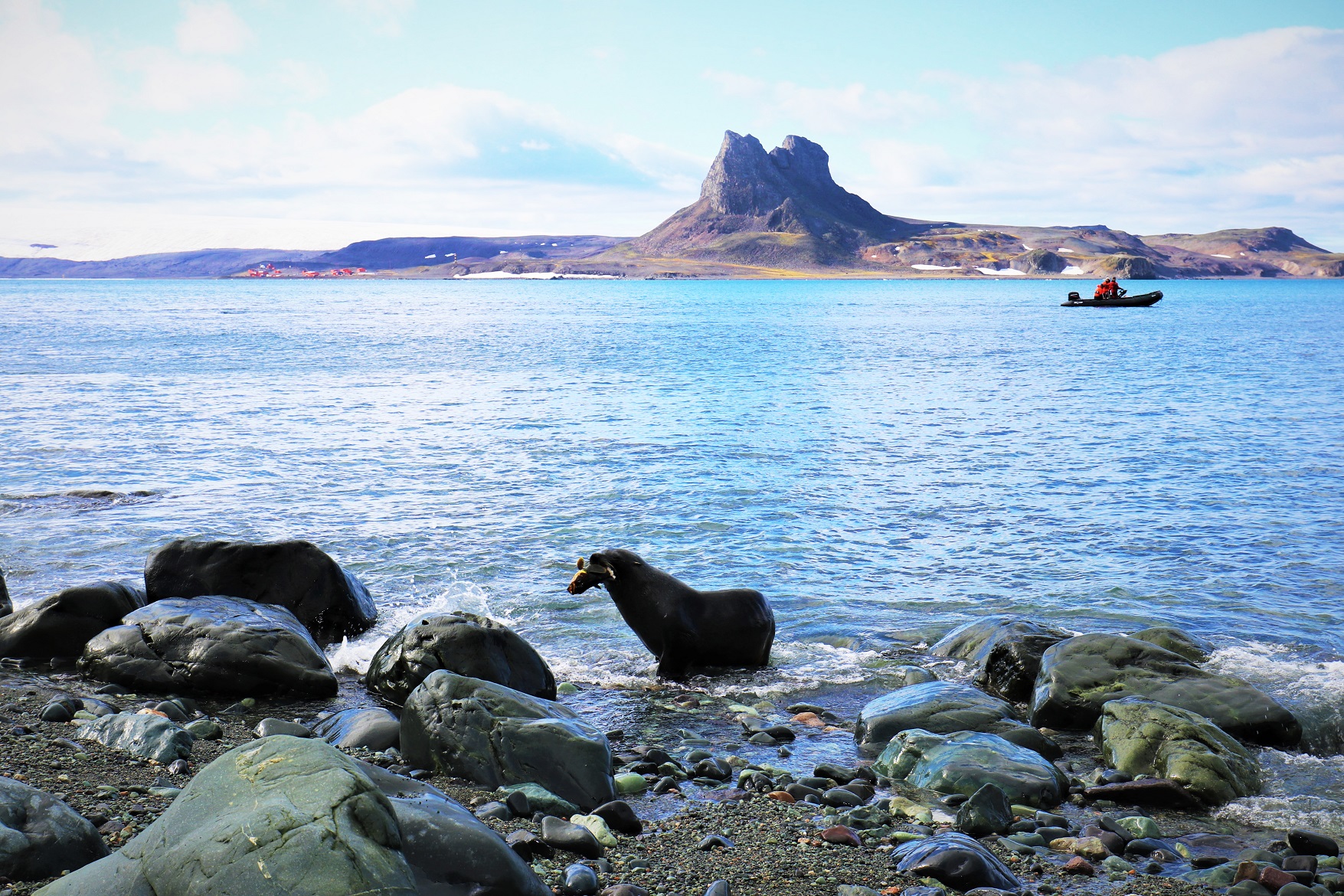 남극의 환경상 펭귄, 해표, 물개 등을 많이 보지만, 그들의 식사 시간을 마주하기는 어려운 것 같다. 우리 기지 반대편 포터 소만을 가서 야외 작업을 하던 중 물고기를 잡은 물개를 보고 급하게 셔터를 눌렀다. 뒤에 보이는 굉장히 신기한 모양의 산이 삼형제봉이라 불리는 산이고 좌측에는 아르헨티나의 남극 기지중 하나인 깔리니 기지가 위치해 있다. 나중에 안 사실이지만 바다를 가로지르는 보트에는 아르헨티나의 네트워크 엔지니어인 동갑내기 친구가 타고 있었다고 한다. 언젠가 한번 그 친구와의 이야기를 다뤄보도록 하겠다.