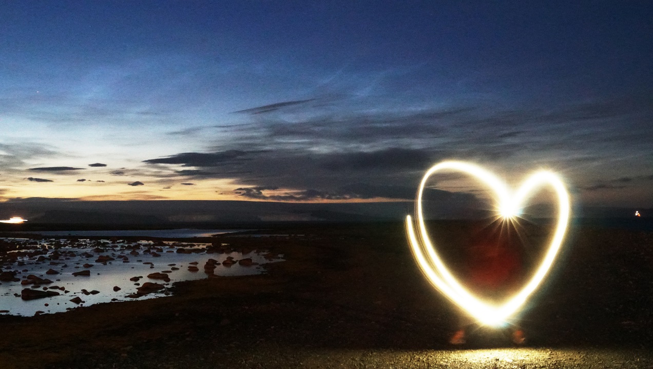 기지 바로 옆에 뻗어 나온 세종곶(Cape Sejong)에서 노을 사진을 찍던 중 갑작스레 장노출 사진을 찍고 싶어서 찍은 사진이다. 혼자 셔터 누르고 달려가서 하트까지 그리느라.. 마음에 드는 예쁜 하트가 나올 때까지 수차례의 원맨쇼를 반복했다. 사진의 제목은 1만 7천여 km 떨어진 고국에서 기다리고 있을 연구대원의 가족들에게 바치는 마음의 의미로 지었다.