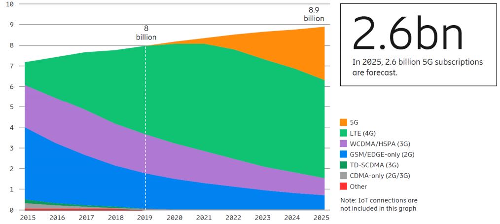 한국, 미국, 중국은 지난해 5G 상용화 후 적극적인 서비스 확산을 위한 노력을 기울이고 있고, 일본 역시 2020년 상반기에 상용화를 목표로 두고 있는 등 전 세계적으로 5G 상용화 확산과 급속한 시장 성장이 이루어지고 있다. 에릭슨은 세계 5G 가입건수는 2025년에 26억 건에 달할 것으로 예측하고, 가트너에서는 2020년 5G 인프라 매출이 약 42억 달러로 전망하고 있다.